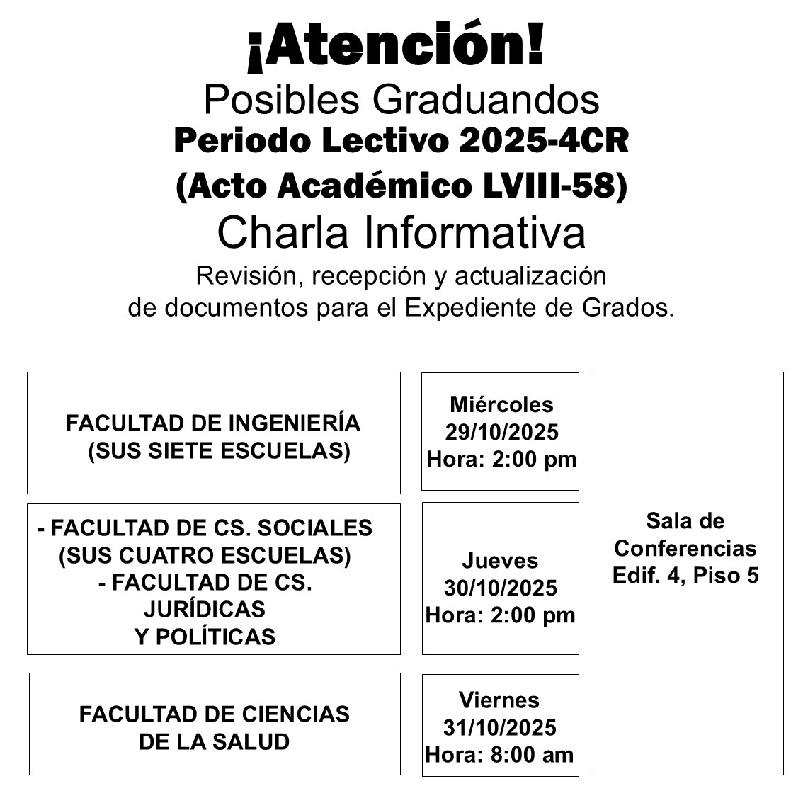 Ver CHARLA INFORMATIVA - POSIBLES GRADUANDOS 2025-4CR ACTO ACADEMICO LVIII | |